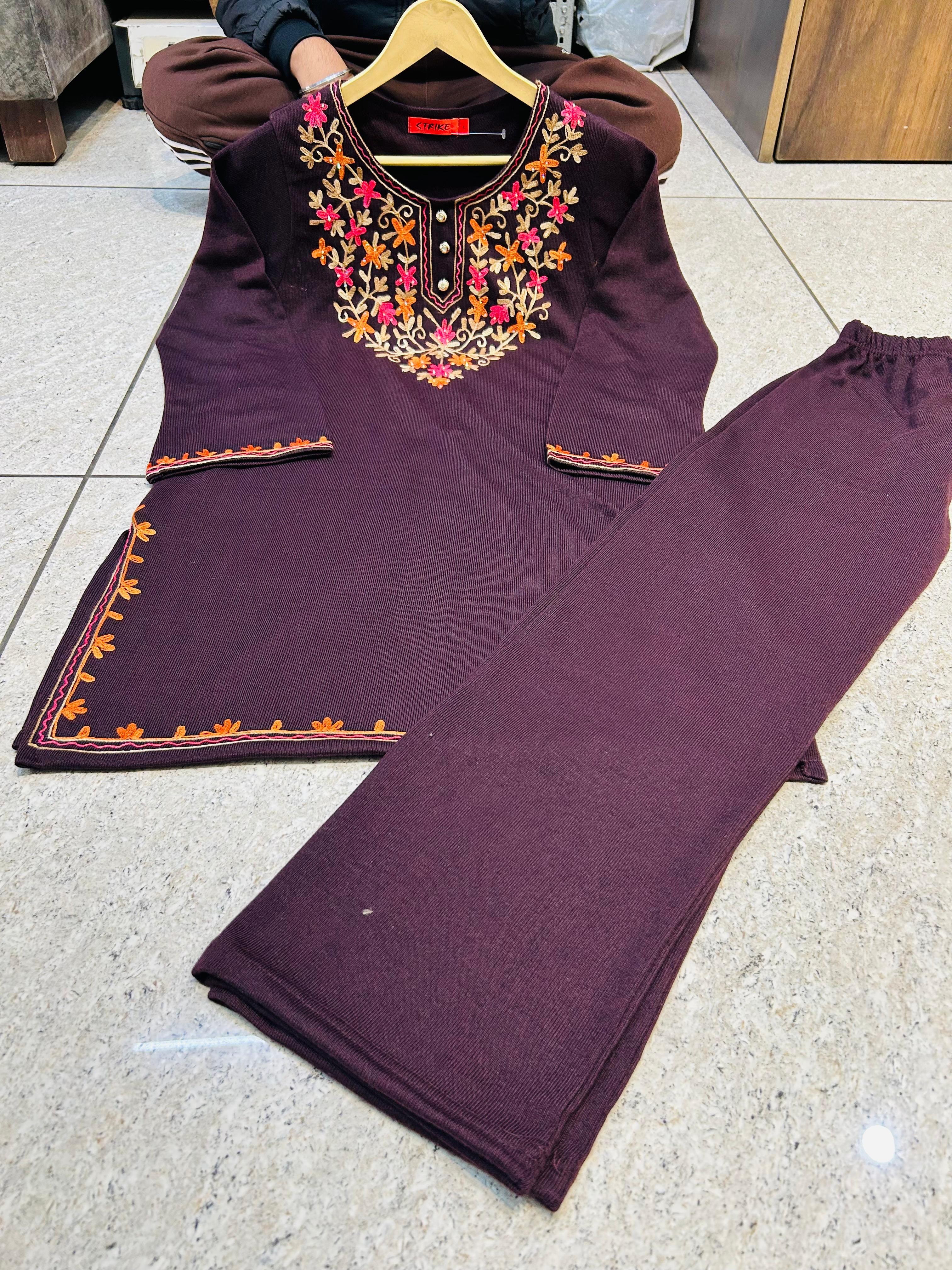Beautifull Kashmiri Embroidery Detailing On Cord Set